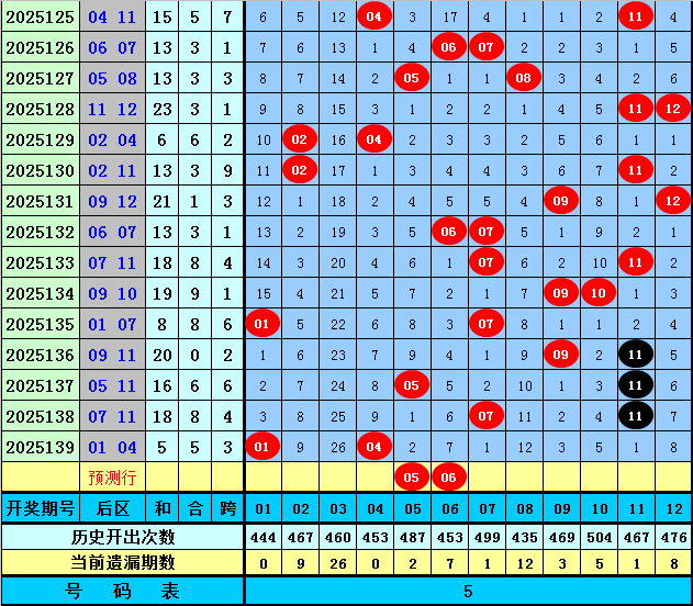 后分离析:在第140期历史同时开奖中,后区奖号奇偶比为18:14,最近5年同时后区奇偶走势为:全奇、一奇一偶、全偶、一奇一偶、一奇一偶,本年同时看好再出一奇一偶组合,温雅号码05、06。